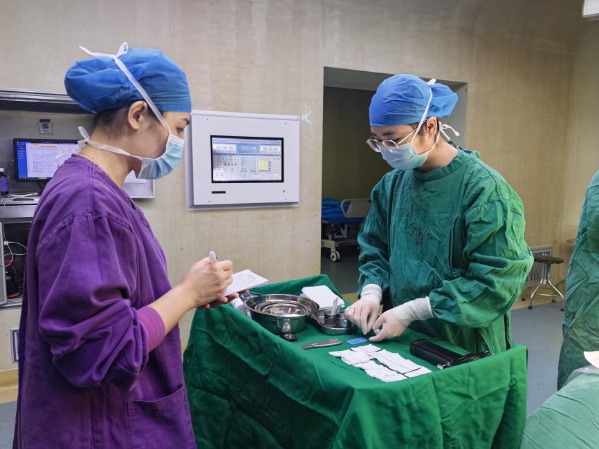 穿梭不息的身影、精准娴熟的操作、严谨细致的坚守,手术室护士们用脚步丈量责任,用专业守护平安,成为手术顺利开展的“坚强后盾”。术前,他们细致清点准备手术器械、耗材,反复核对患者信息、手术部位,不放过任何一个细节,全力杜绝各类安全隐患,为手术开展筑牢基础;术中,他们紧盯手术进程,精准传递每一件器械,默契配合医生完成各项操作,眼观六路、耳听八方,随时响应手术中的各类需求,用默契诠释协同力量;术后,他们快速整理器械、规范清理手术间,细致护送患者安全返回病区,做好交接工作,实现护理服务无缝衔接。