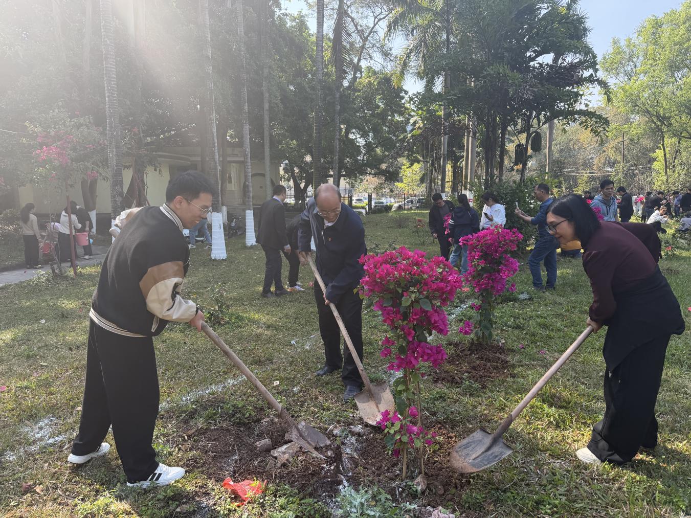 春风催新绿,植树正当时。为深入践行习近平生态文明思想,深化党建带团建工作,3月12日,玉林市红十字会医院党委联合院团委在医院183广场开展植树节主题活动。165名党员、团员代表以“党建红”引领“生态绿”,携手种下一片充满生机的“健康林”,用实际行动为院区添绿,为医院高质量发展聚力。