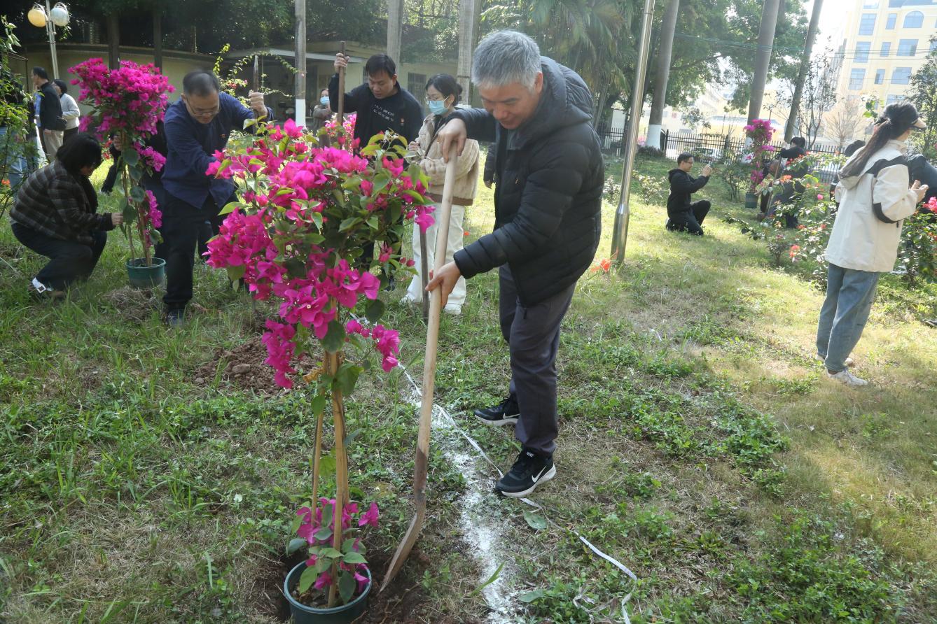 活动现场,医院党员干部充分发挥先锋模范作用,带头挥锹铲土、扶苗定植、围堰浇水、踏实压紧,每一道工序都认真细致、规范有序。青年团员们热情高涨、干劲十足,在党员的带领下分工协作、默契配合,挖坑、运苗、浇灌、养护,一派热火朝天的劳动景象。大家以劳践志、以行护绿,亲手将一株株树苗植入沃土,为春日大地增添勃勃生机,也为生态文明建设种下绿色希望。