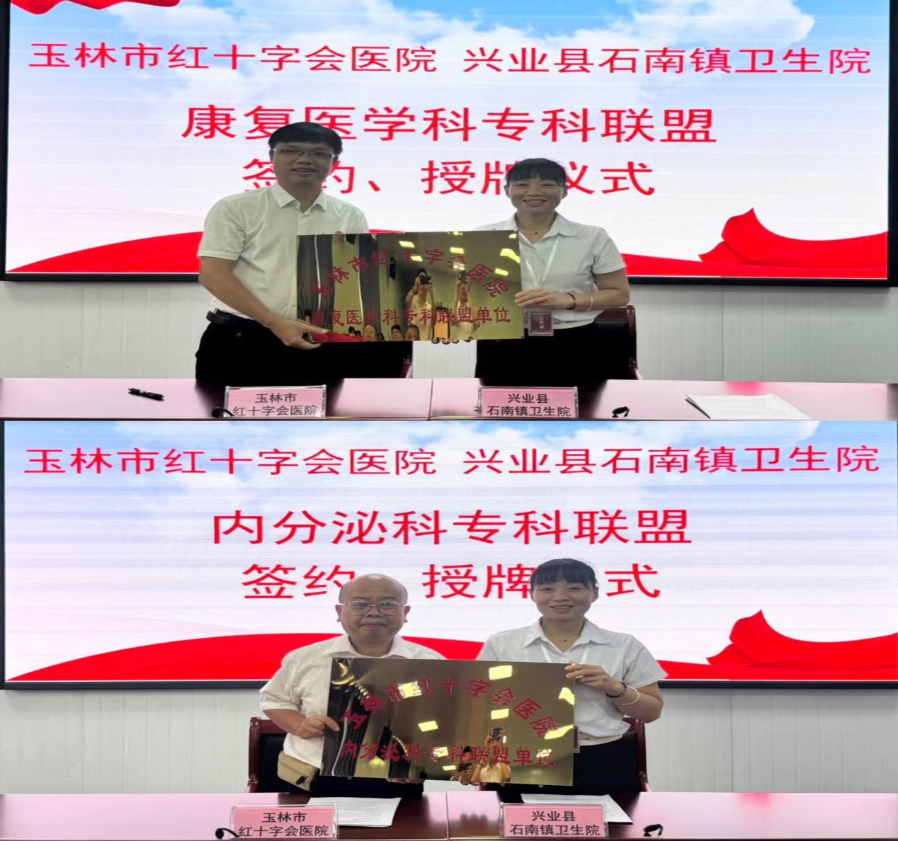 随后,玉林市红十字会医院康复医学科、内分泌科主任分别与石南镇卫生院负责人签署了专科联盟合作协议。此次专科联盟的成立,标志着玉林市红十字会医院将在技术指导、人才培养、科室建设等方面对卫生院进行精准帮扶,全面提升基层医疗机构的专科疾病诊疗能力