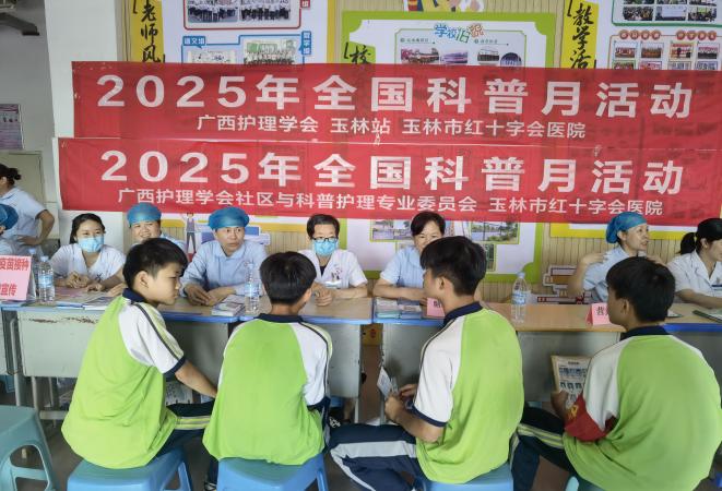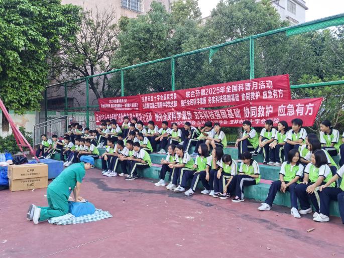 根据《全民科学素质纲要实施工作办公室关于广泛开展首个全国科普月活动的通知》(纲要办发〔2025〕2号)等文件精神,为大力弘扬科学精神、传播科学思想,推动实施全民科学素质行动,助力科技强国建设,玉林市红十字会医院于2025年9月15日以“提升全民科学素质 夯实科技强国基础——协同救护 应急有方”为主题,组织医护专家团队赴玉林市玉东新区第三初级中学开展系列护理科普活动。