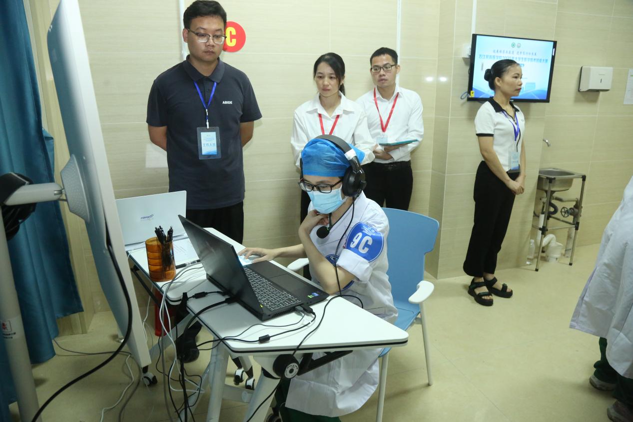 初赛阶段,六大平行赛站同步开展考核。在胸腔穿刺术、腰椎穿刺术赛站,选手面对标准化病人(SP),需在严格执行无菌操作的同时,耐心沟通解释,兼顾技术精准度与人文关怀;AI问诊环节中,虚拟急腹症案例考验选手快速提炼病史、构建鉴别诊断思路的能力,全方位考察临床思维的逻辑性与连贯性。
