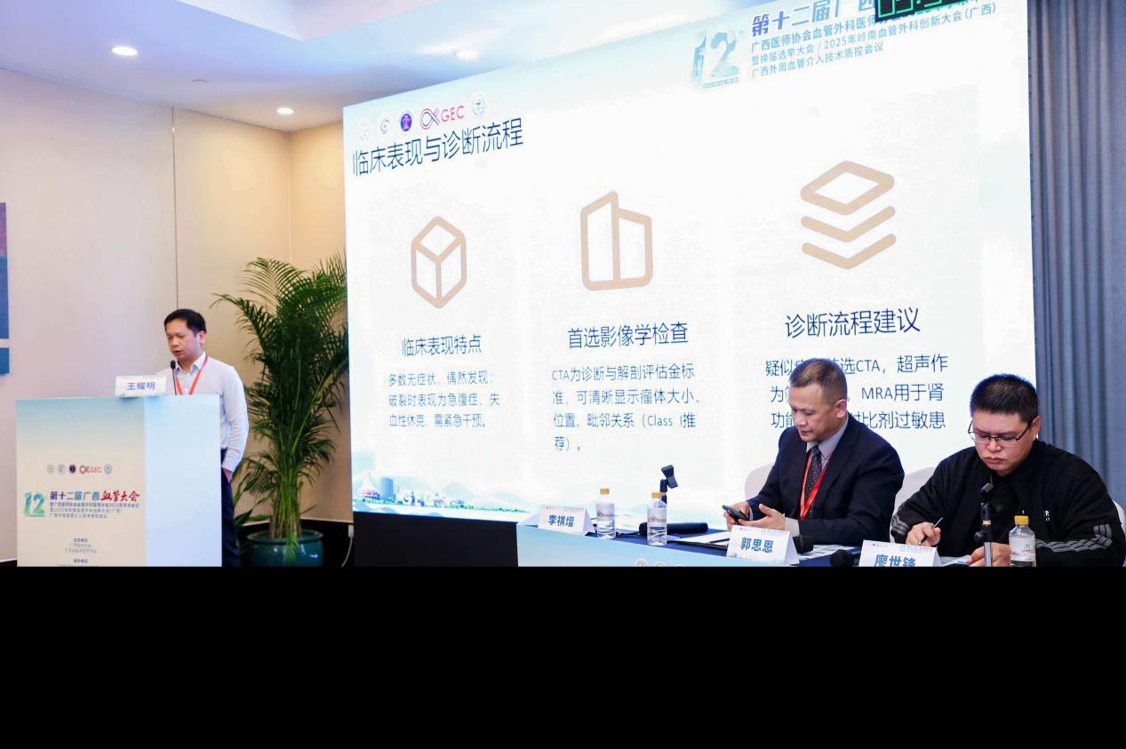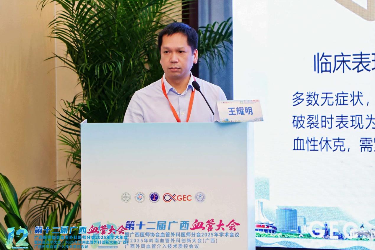 此外,王耀明主任医师还应邀授课《ESVS2025关于内脏动脉瘤的临床实践指南解读》,他秉持“锐意进取,邕江潮头立新声”之势,在大会上生动阐释了国际最新指南的精髓与临床实践要义,充分展现了玉林市红十字会医院肝胆胃肠外科一病区在紧跟学术前沿、深化专业学习上的积极努力与锐意进取。本次参会,为科室提供了一个展示、学习与交流的重要窗口。