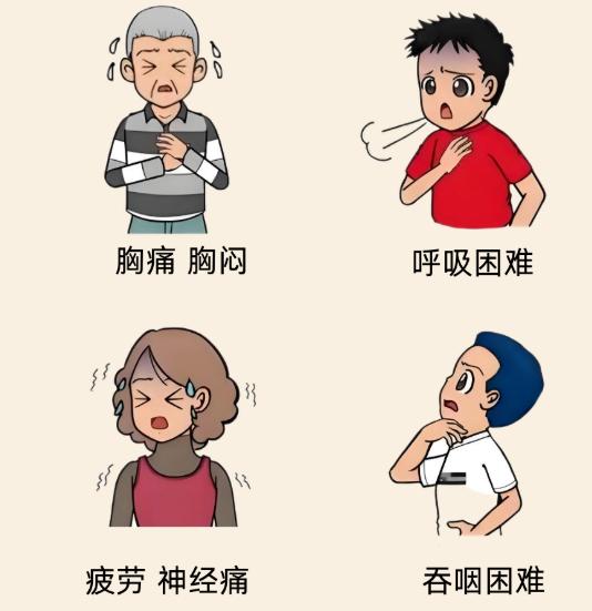 1.挤到“氧气输送管”(气管):总觉得胸闷、老咳嗽,喘气费劲,像气管被捏住了一样。