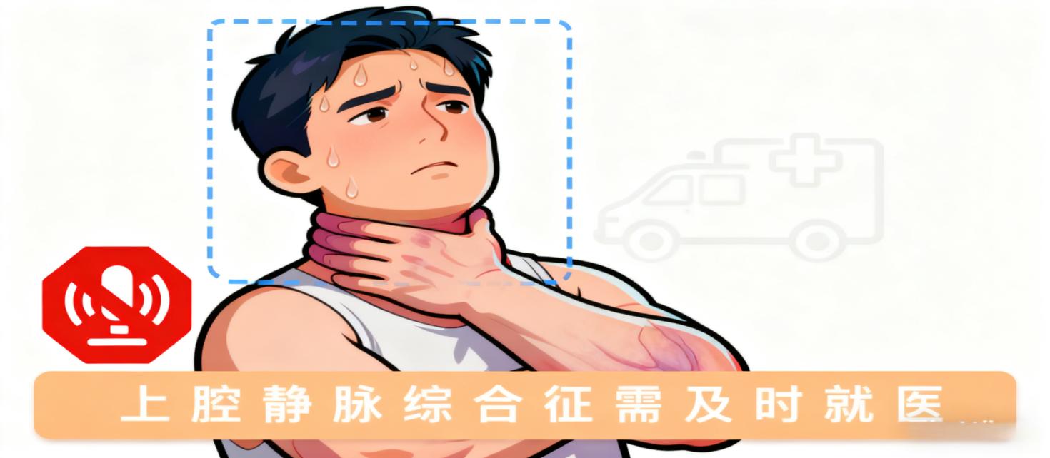 4.塞住“重要交通干线”(上腔静脉):这是最紧急的情况!脸、脖子、胳膊会突然肿起来,脸还发紫,这时候必须立刻去医院,一刻都不能耽误。