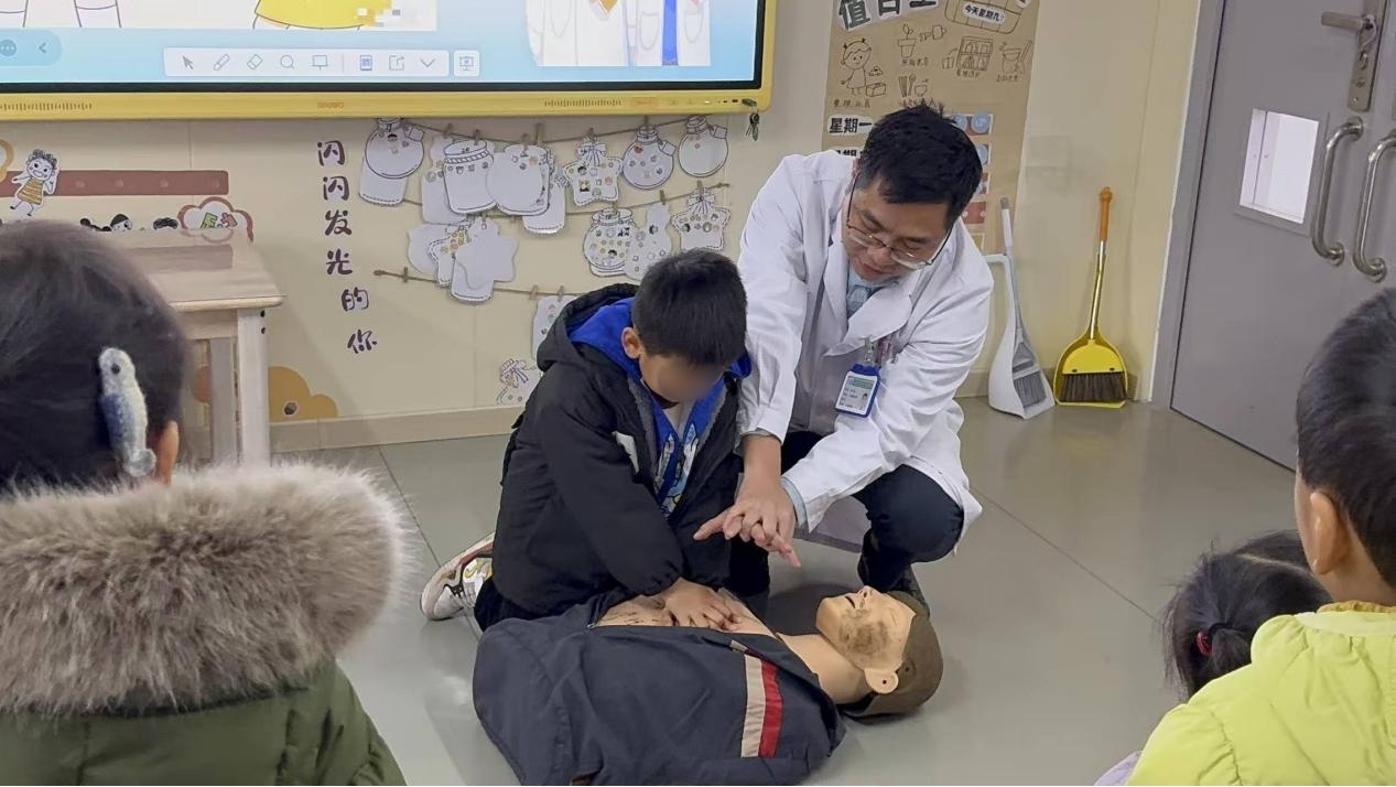 除了认识心脏,学会保护自己也很关键。姚赋医生用简单易懂的语言,向孩子们普及了基础的心肺复苏常识,还通过情景模拟的方式,教大家遇到紧急情况该怎么办。“如果看到有人不舒服,小朋友们不要慌,第一时间找爸爸妈妈、老师或者身边的大人帮忙,记住啦吗?”“记住啦!”孩子们齐声回答,把安全求助的核心原则牢牢记在了心里。