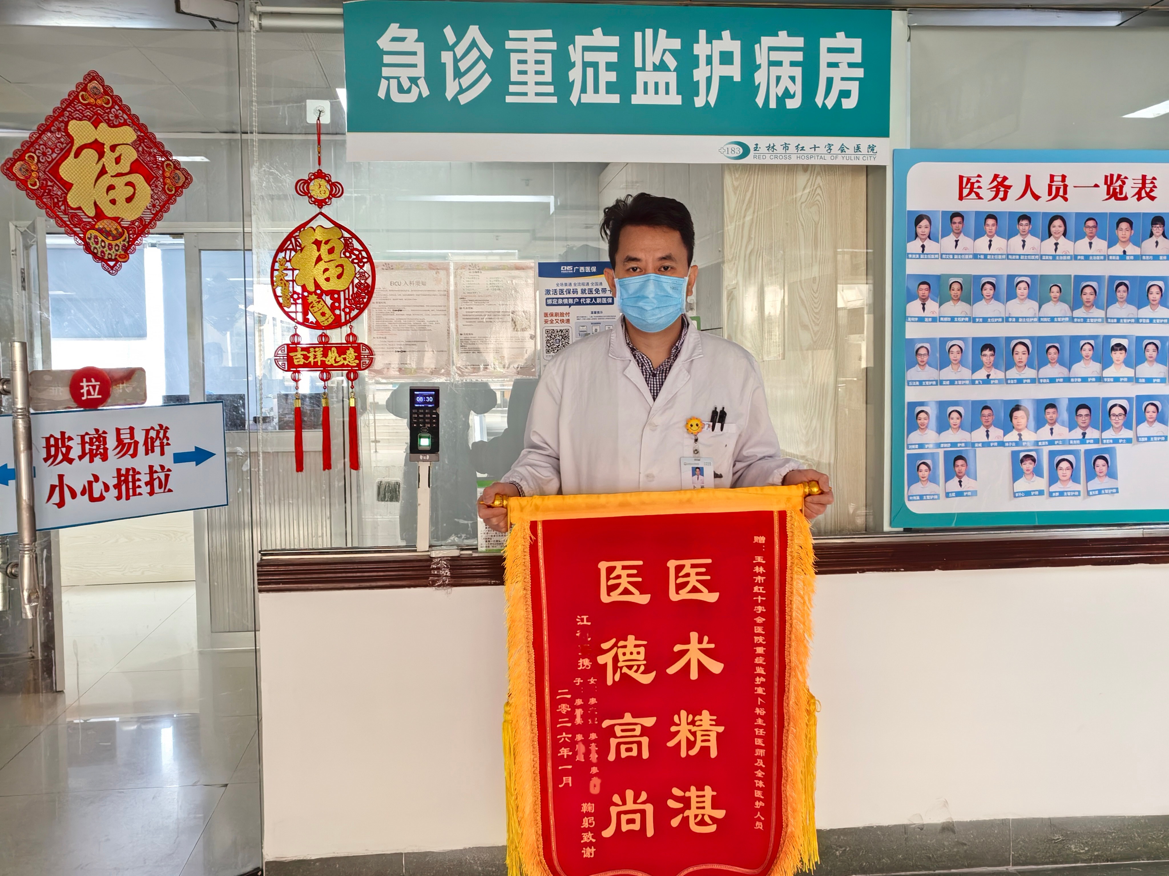 锦旗虽轻,情意重千钧。这份来自患者的认可,将持续激励着玉林市红十字会医院急诊重症监护病房全体医护人员始终坚守“以患者为中心”的服务理念,不忘初心、牢记使命,以更精湛的医术、更优质的服务、更严谨的态度,守护每一位急危重症患者的生命健康,为人民群众的健康保驾护航。