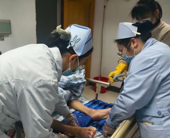 科室组建由医生、护士、心理咨询师组成的专业安宁疗护团队,制定规范化、个性化疗护流程,形成涵盖症状管理、心理疏导、舒适护理、精神支持的全维度服务内容,实现“疗护随人而动”。护士作为服务核心力量,既是医疗方案的精准执行者,也是患者身心状态的细致评估者与暖心支持者,用专业技术与共情沟通,让终末期患者无需辗转科室,就能在熟悉的环境中获得持续、系统的专业照护,填补了固定服务场所与患者实际需求之间的间隙。