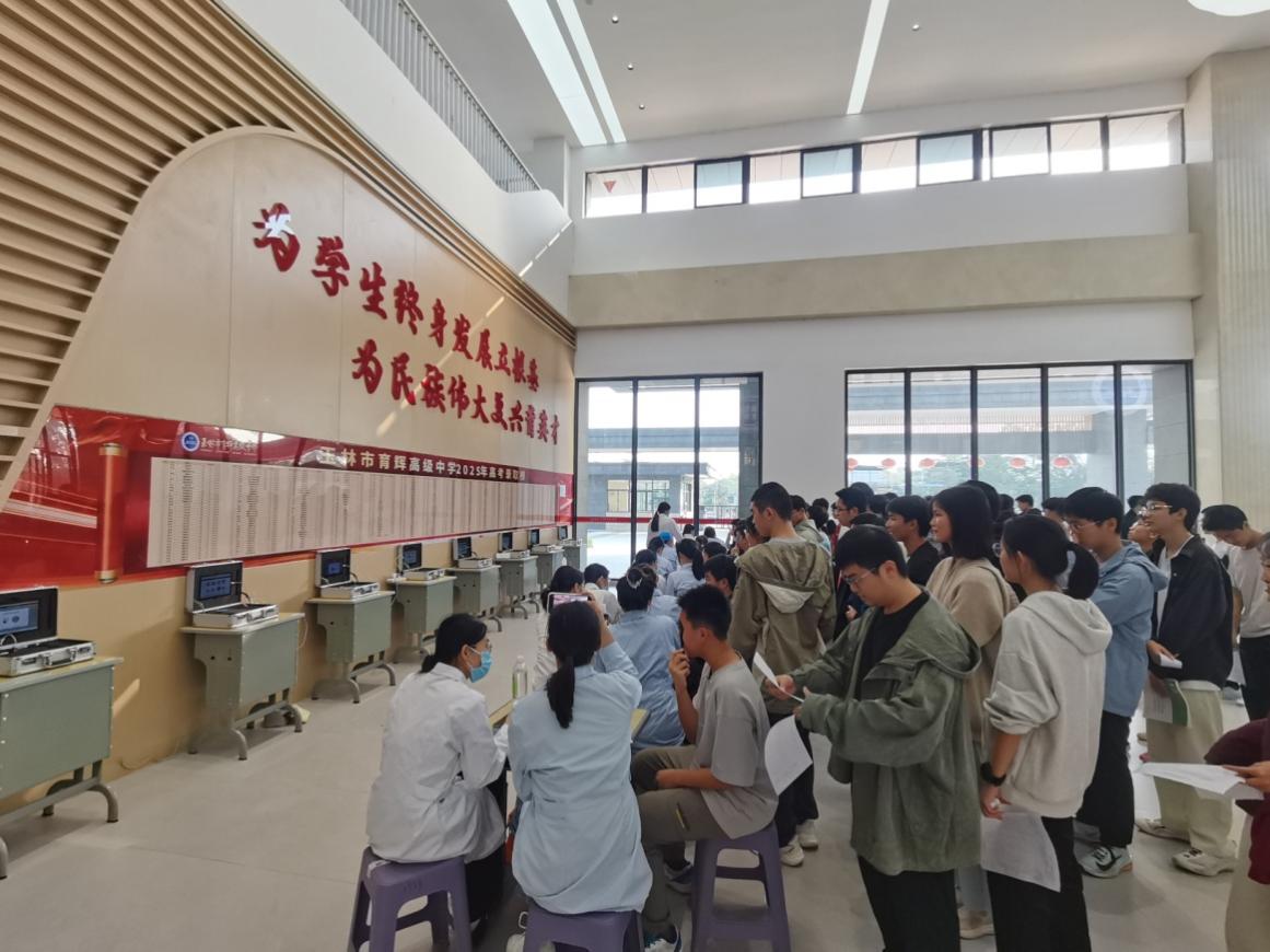 2025年12月6日,玉林市红十字会医院的医护团队走进玉林市育辉高级中学,为高一、高二共2300多名学生进行了一次全面、细致的健康体检。此次体检活动旨在及时掌握学生体质健康状况,提高学生健康意识,为青少年的健康成长保驾护航。
