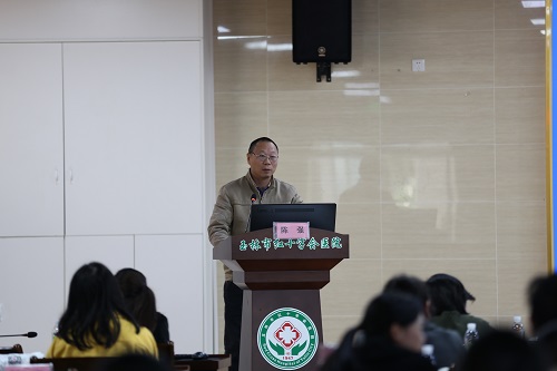 玉林市红十字会医院党委书记张九进在开幕式上致辞。他着重强调了VTE防治工作在临床诊疗工作中的核心价值,明确指出基层医疗机构是VTE综合防控体系的前沿阵地,而提升基层医务人员的VTE规范化防治能力,是有效降低患者致残率与死亡率的关键举措。